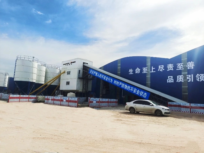 近日,在山東濟南遙墻機場二期改擴建工程施工現(xiàn)場,山推建友1臺E5R-240混凝土攪拌站完成安裝,進入試打料階段,再次為濟南基礎(chǔ)建設(shè)貢獻力量。