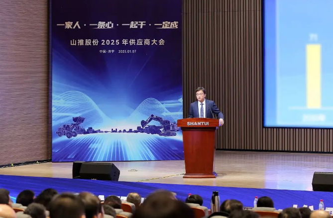 1月6日,以“一家人、一條心、一起干、一定成”為主題的山推股份2025年供應商大會在山東濟寧召開。山推股份黨委書記、董事長李士振出席會議并為2024年度優(yōu)秀供應商頒獎,公司總經理張民,及山推和山重建機相關領導出席,來自全國310余家供應商代表參加。